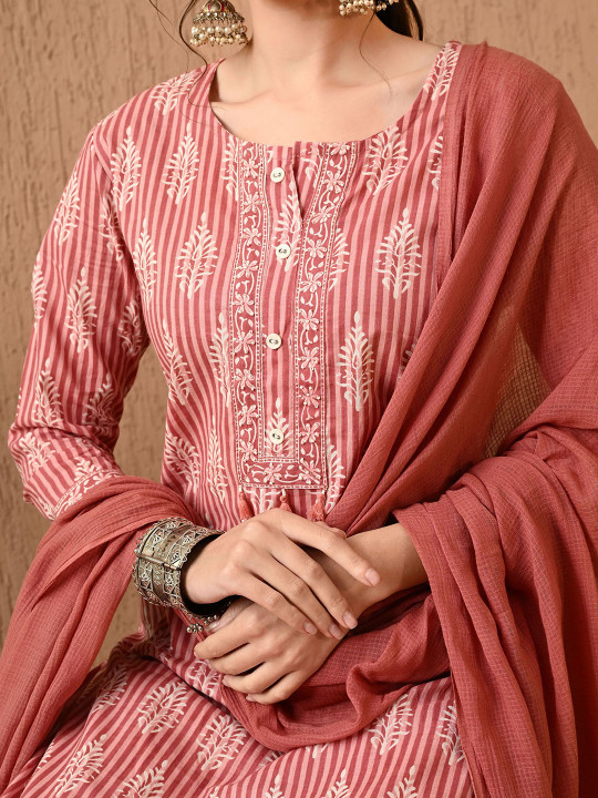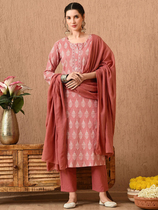 Upgrade your ethnic wardrobe with this elegant peach kurti set featuring delicate white prints and a graceful silhouette. The kurti comes with a matching straight pant and a soft, flowy dupatta that adds a refined traditional touch. Perfect for daily wear, festive gatherings, office wear, and casual occasions.