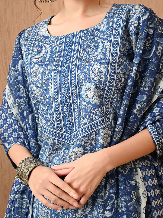Indigo Blue Printed Kurta Set with Dupatta cotton 60-60